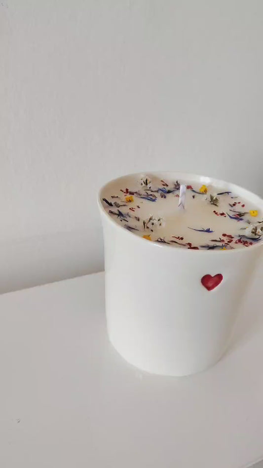 Bougie coeur | Bougie fleurie | Bougie artisanale parfumée | Pot en porcelaine | Cadeau fête des mères | Idée cadeau anniversaire | Nounou